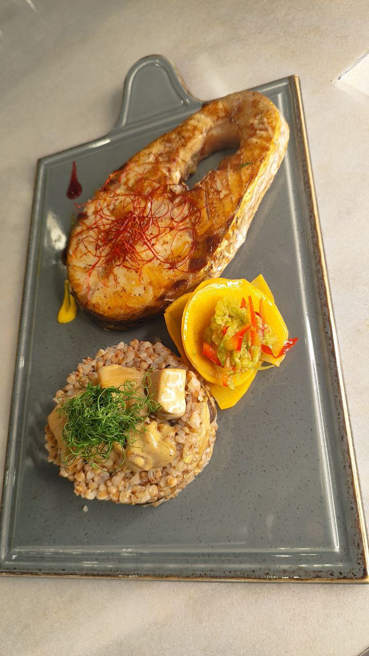 Мы готовили и дегустировали закуски из полукопченой дичи и основные блюда из дикой рыбы с белыми грибами.