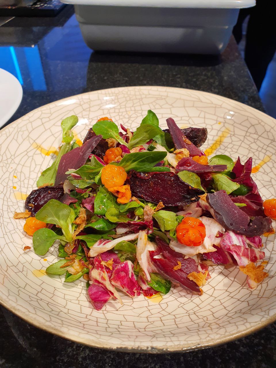 - Блюда из крестца косули с соусом яля айоли, с хумусом и печеной свеклой;