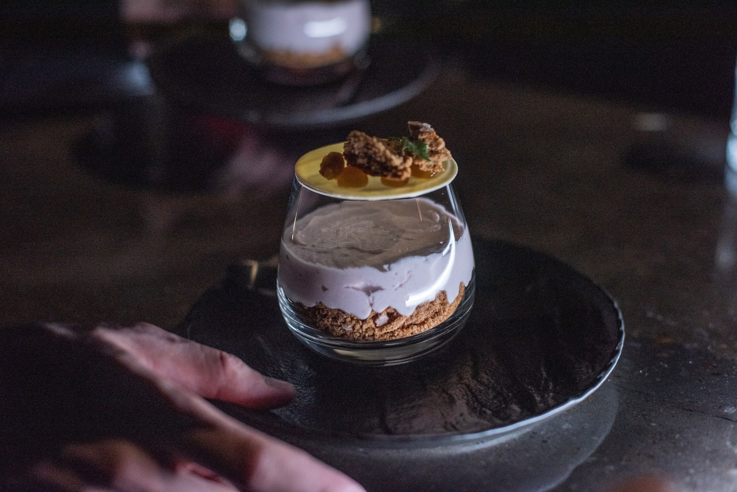 И не обошлось без десерта - мусса из диких ягод с гелем из морошки и пряником