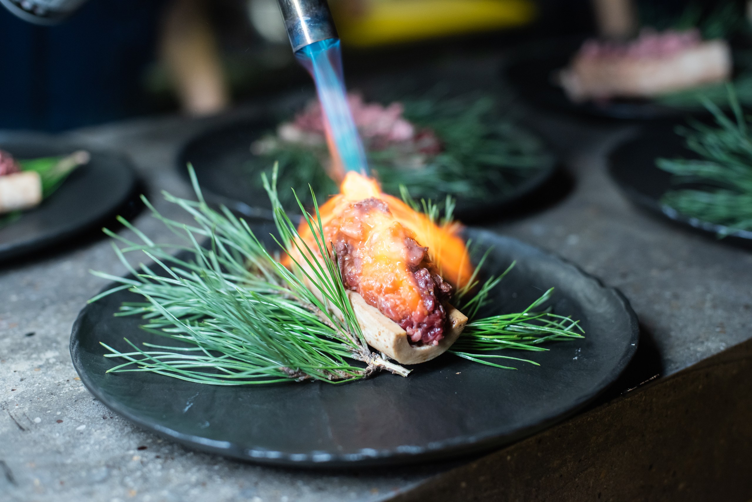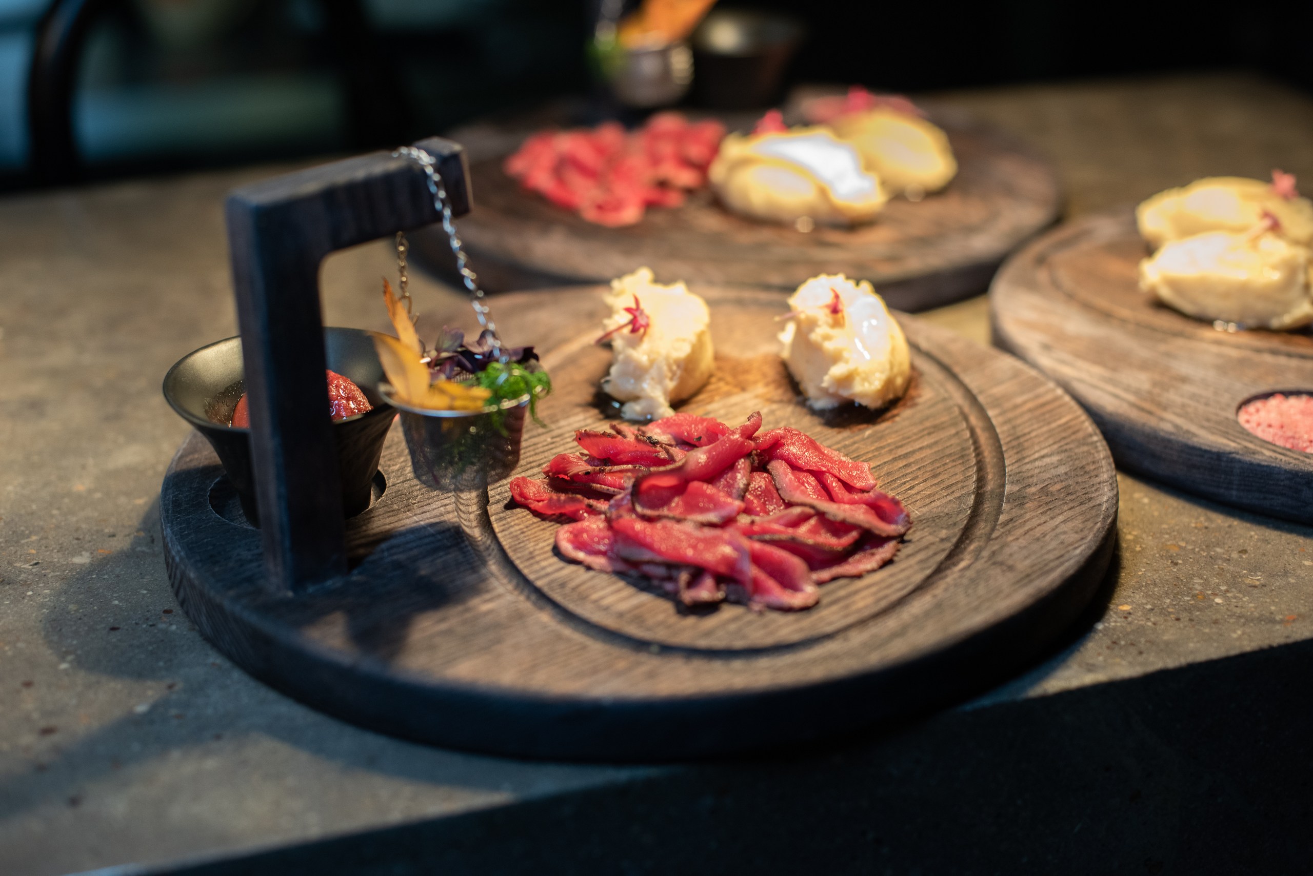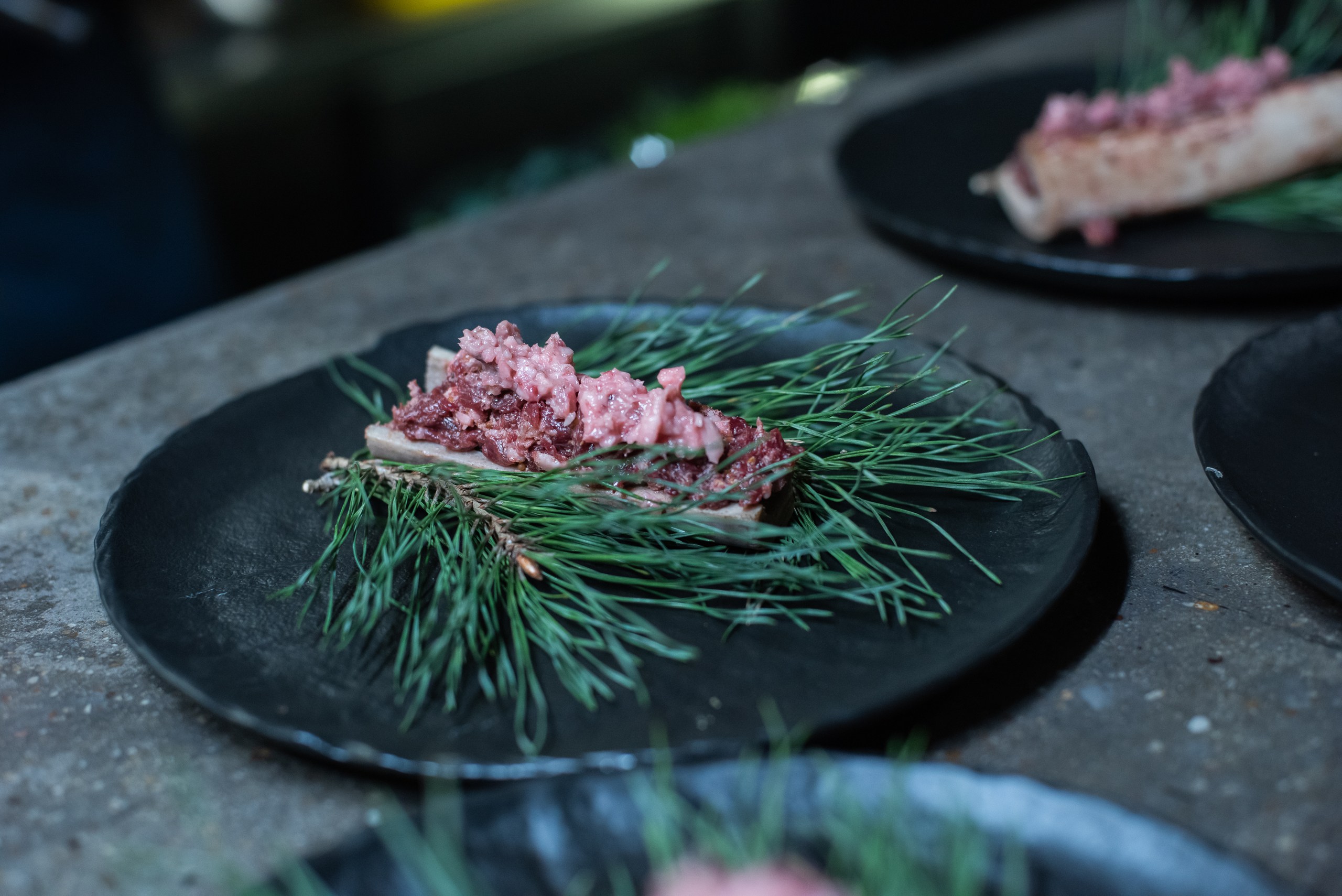 Начали мы с медвежатины и нежного мяса северных рыб.