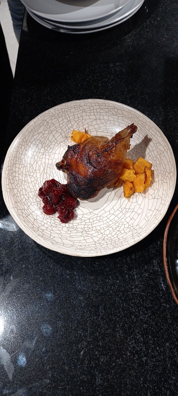 - Жаренное бедро нутрии с тыквой печеной и соусом из клюквы .