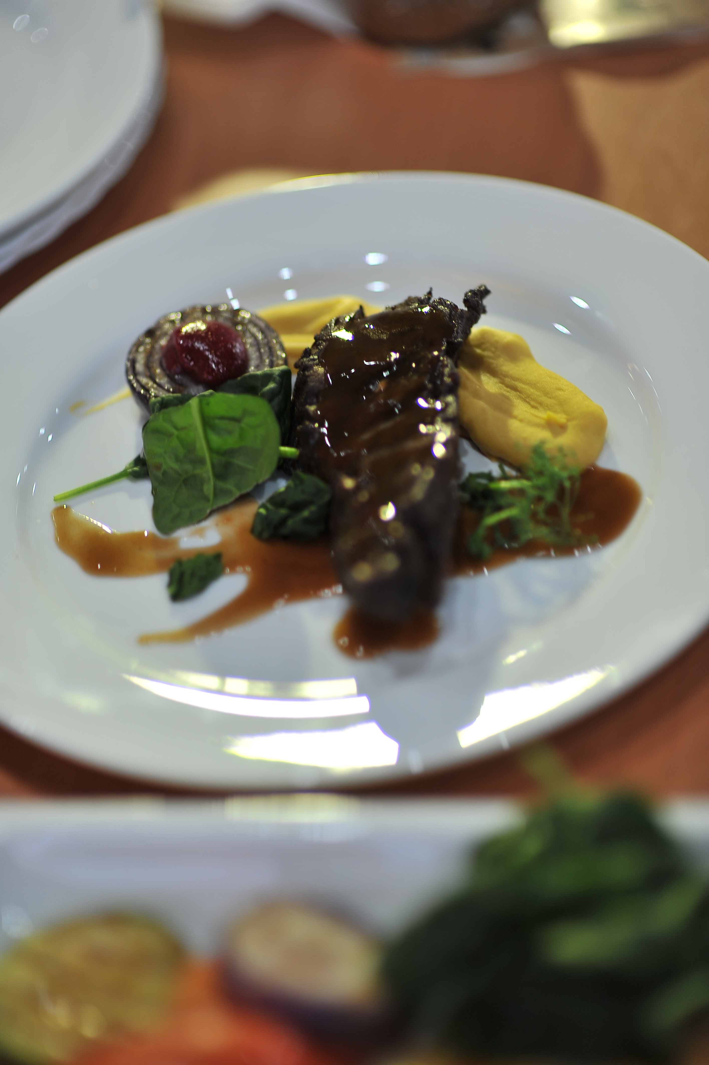 - Окорок бобра томлённый с сезонными овощами;