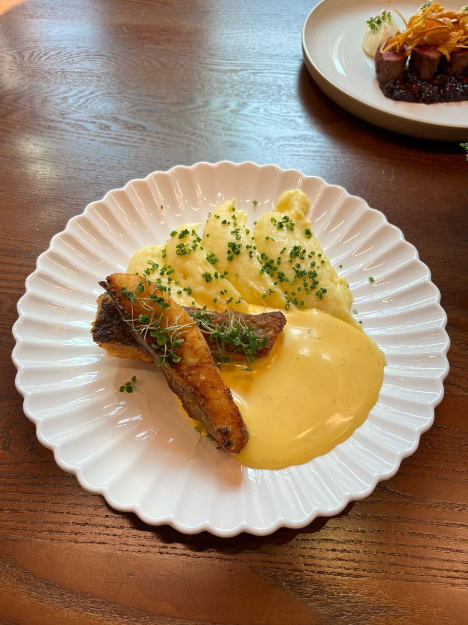 - Муксун в лимонном маринаде с соусом из северных ягод.