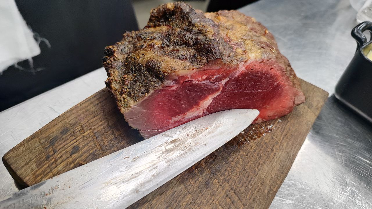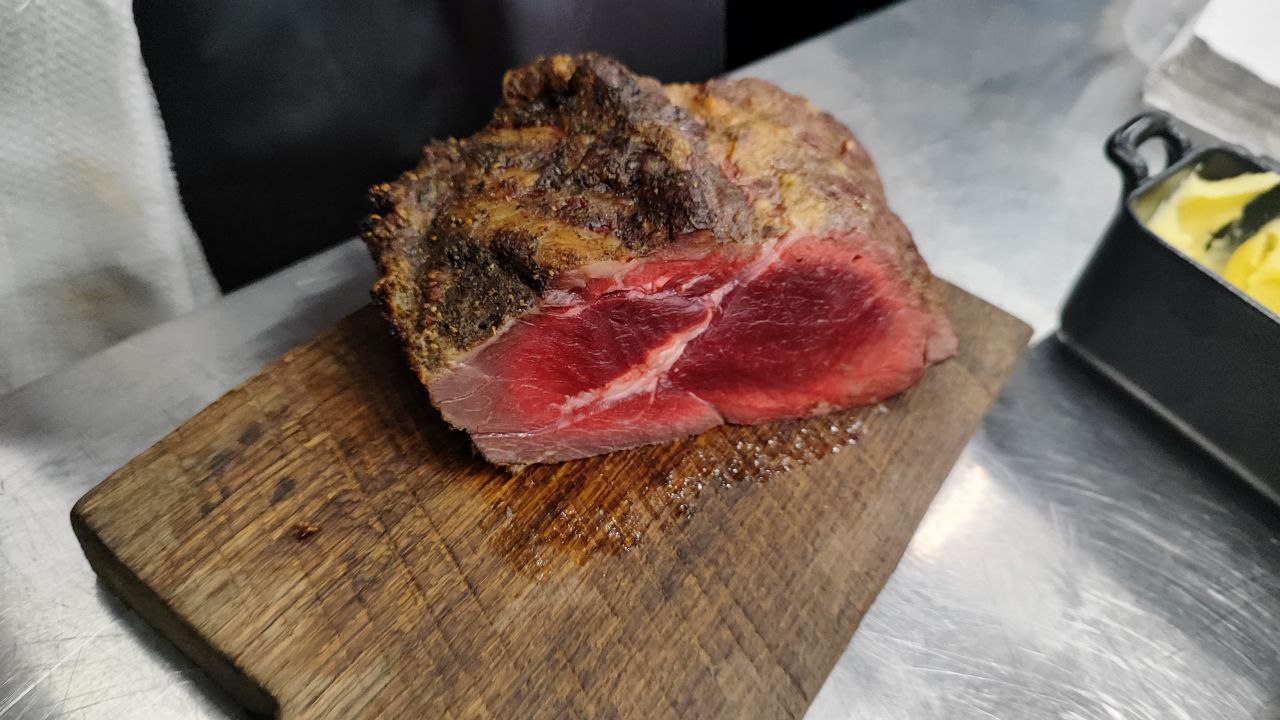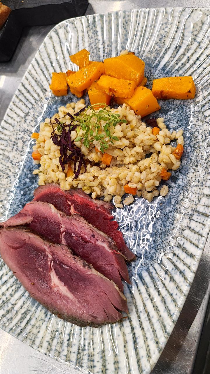 - Ростбиф из толстого края лося с запеченной тыквой в прованских травах на копченном оливковом масле
