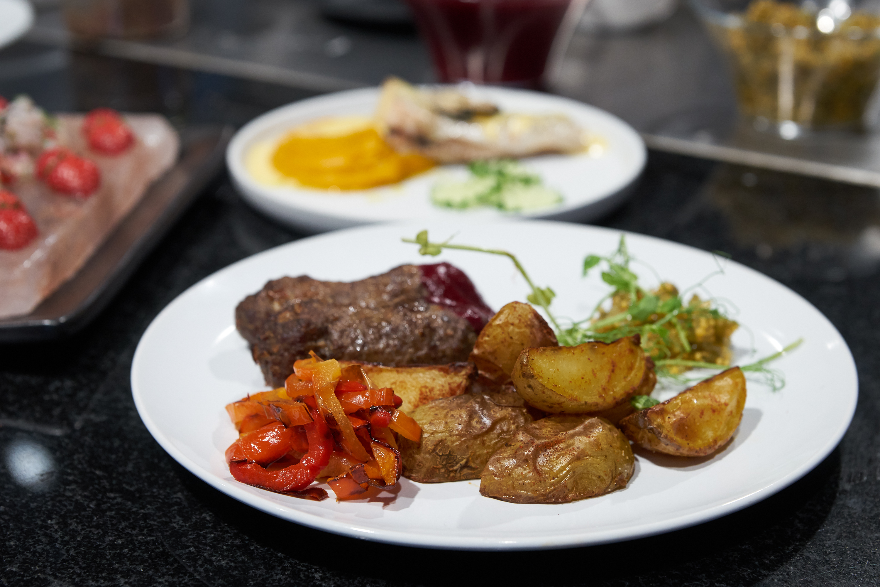 Наш шеф приготовил окорок, корейку и шею медведя. А так же дикую семгу, муксуна, сига и экзотический трюфель! Всё это в нескольких вариантах подачи и приготовления!