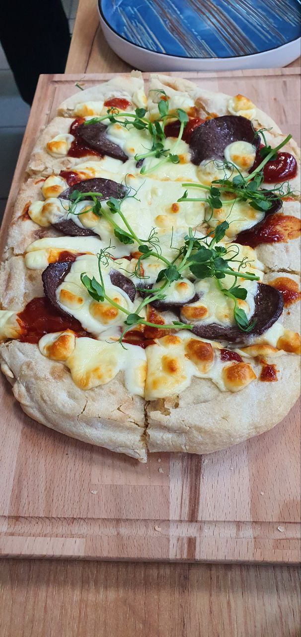 - Пицца с колбасой в/к косуля.