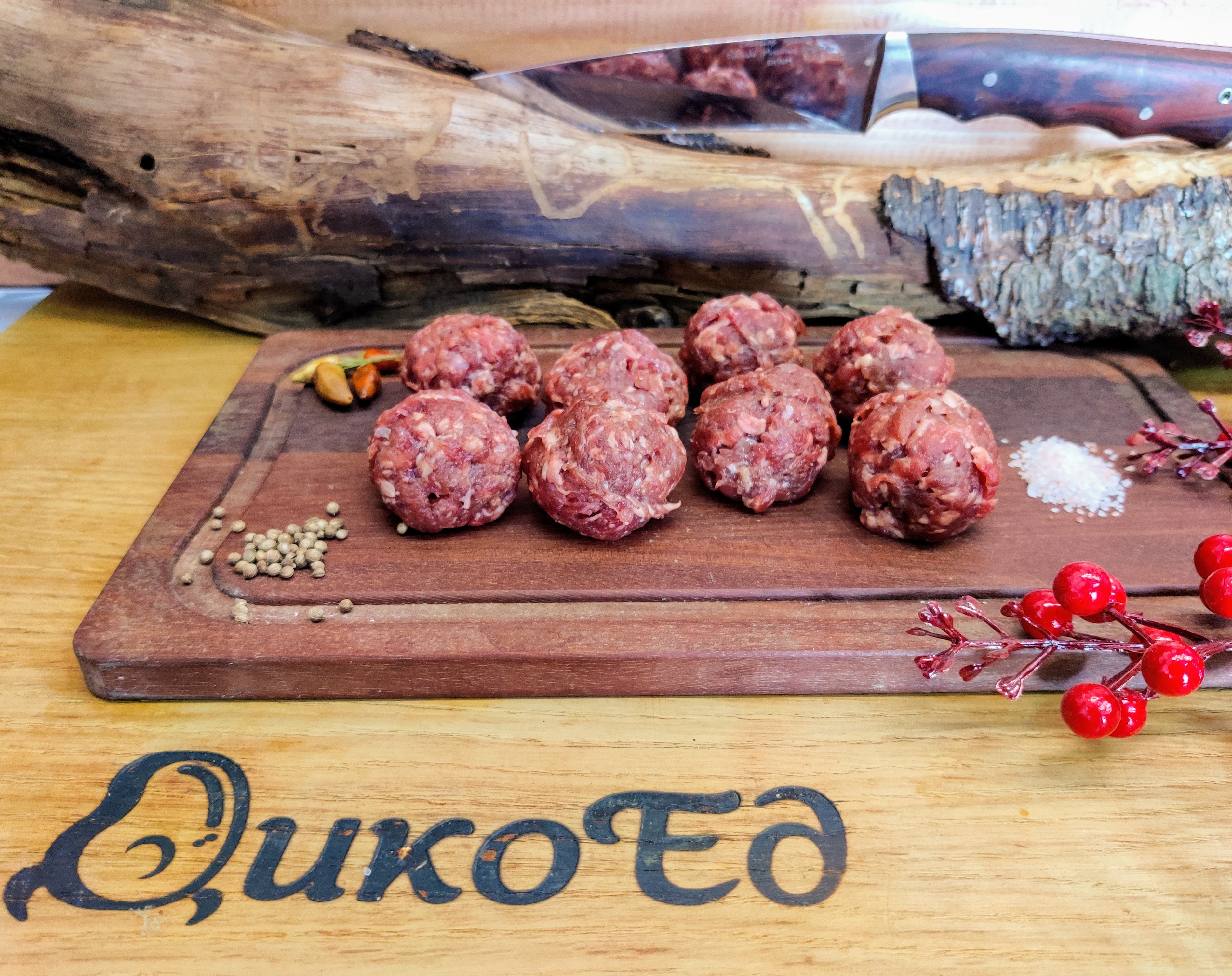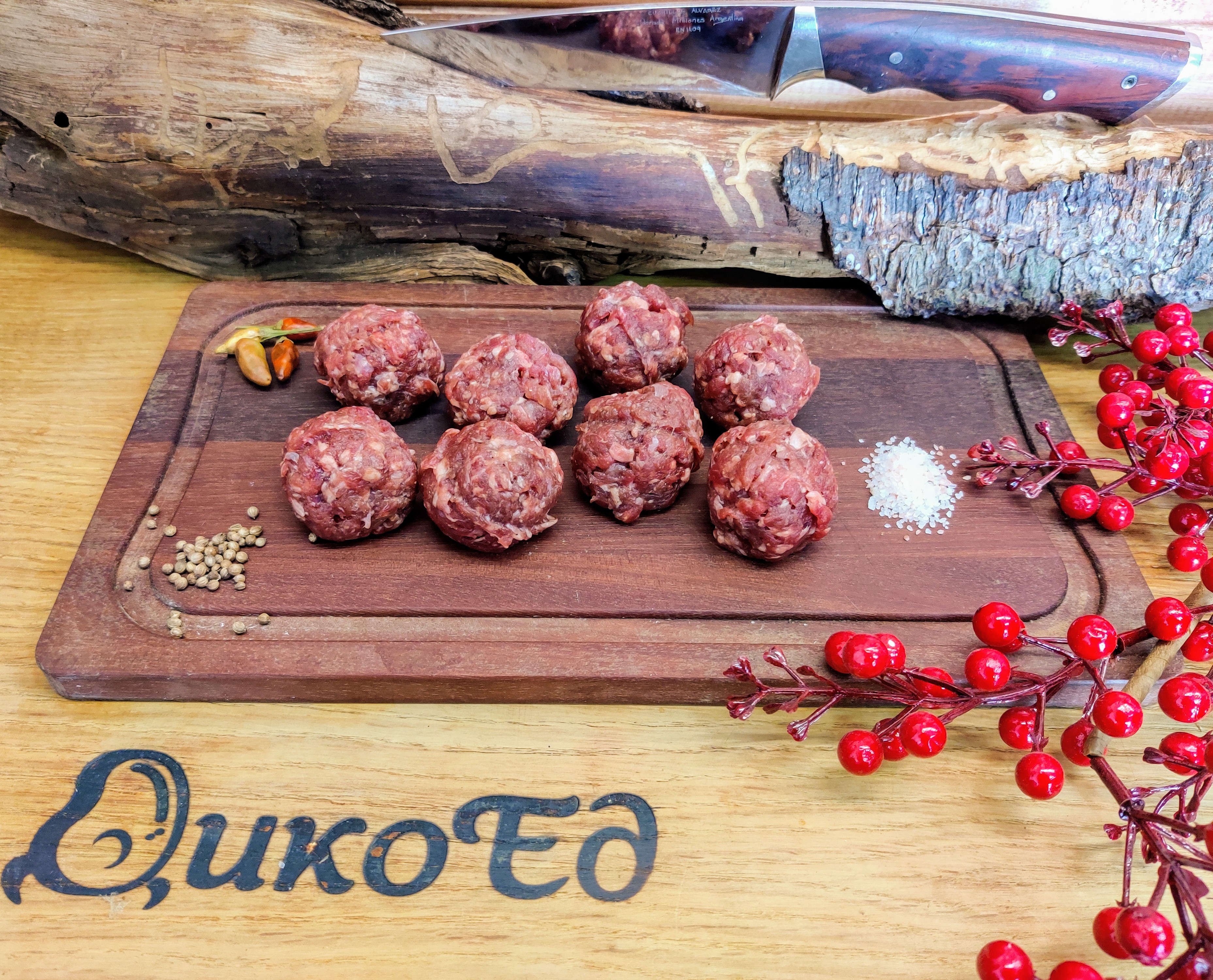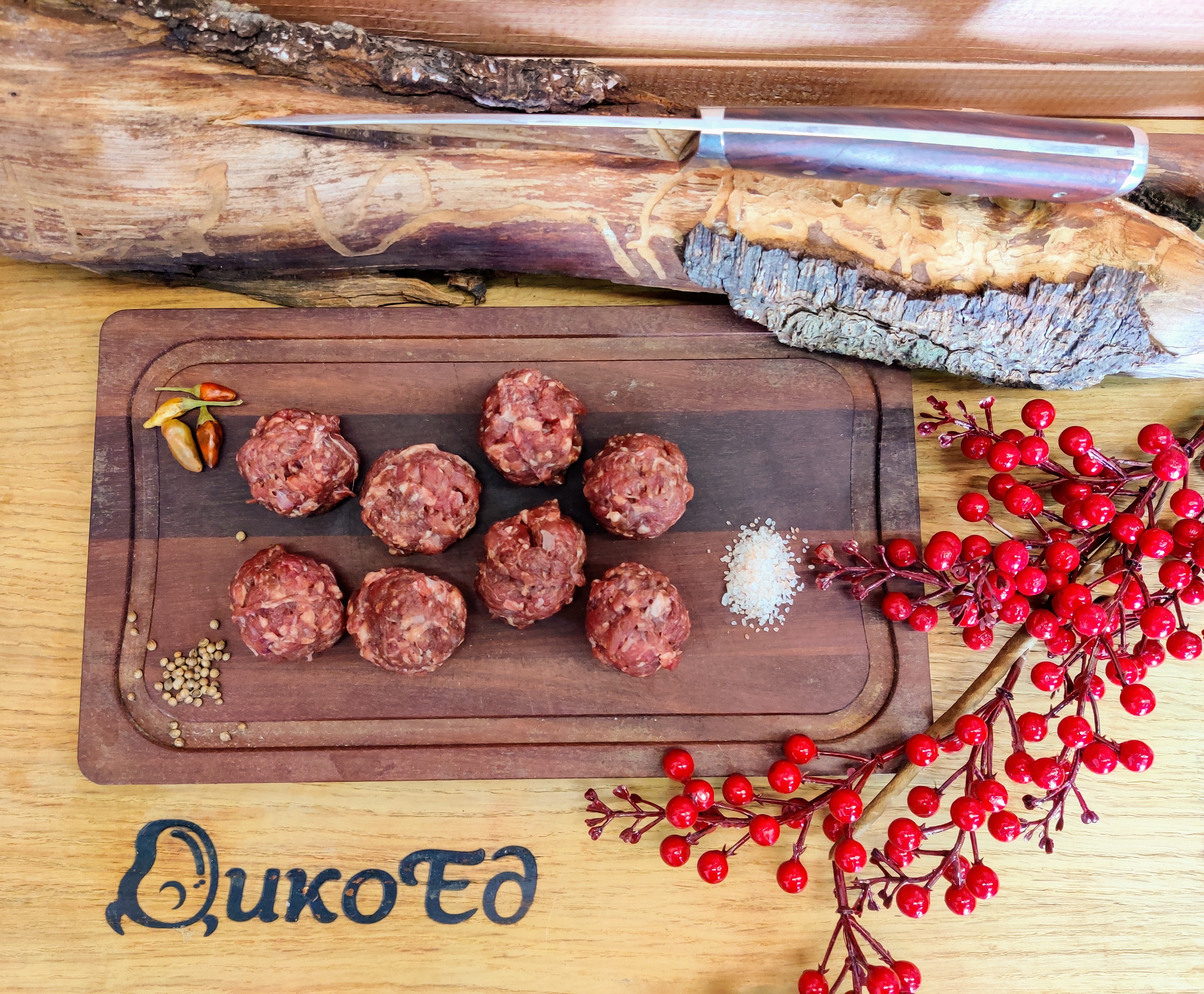 Приобрести фрикадельки из марала захочет каждый, кто хоть раз пробовал мясо самого большого благородного оленя. По питательным свойствам оленина ценится выше, чем лучшие сорта говядины. Полуфабрикаты из нее отличаются благородным, тонким вкусом и ароматом. Обжаренные мясные шары подают с картофелем фри, вареными бобами, маринованными сливами, цветной и красной капустой. К фрикаделькам прекрасно подходят острые или кисло-сладкие соусы с орехами, эстрагоном, ткемали. Вместо соуса можно подать свежие или маринованные ягоды: бруснику, клюкву, смородину и варенье из них.