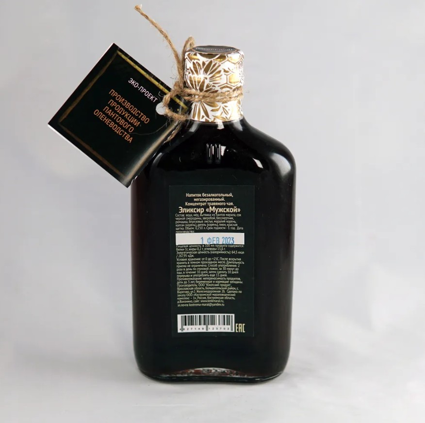 Элексир мужской с пантами. Напиток безалкогольный с вытяжкой из пантов марала, мужских трав.